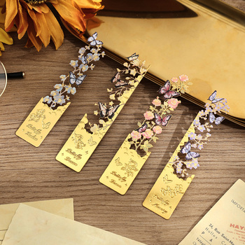 Clip de signet de papillon en métal gravé à la main, fait à la main, en laiton plaqué or de haute qualité, marque-page en métal de fleur