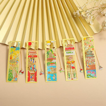 Vente en gros, marque-page Souvenir personnalisé de Style chinois, or mat, impression UV, Clip de signet en métal gravé en laiton